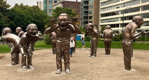 After dinner, we walked through a display of human statues that were made of metal. The exhibit is called A-Maze-Ing-Laughter. Fourteen patinated-bronze figures are featured. The statues were created by Chinese artist Yue Minjun.