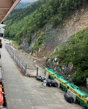 Once the ship is docked, the first thing I notice is how a land/rock slide has impacted our departing the ship.