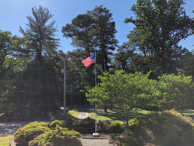 The Sergeant had noticed that the current flagpole was barely peeking over the tops of the dogwood trees. He wanted to insure that the American flag would stand tall above those trees for many years to come.