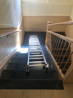 During an interview with the Oversight Committee For The Protection Of Extension Ladders, the Director of Operations at Trinity United Methodist Church, Bill Pike, admitted that he had heaved an extension ladder into a stairwell.