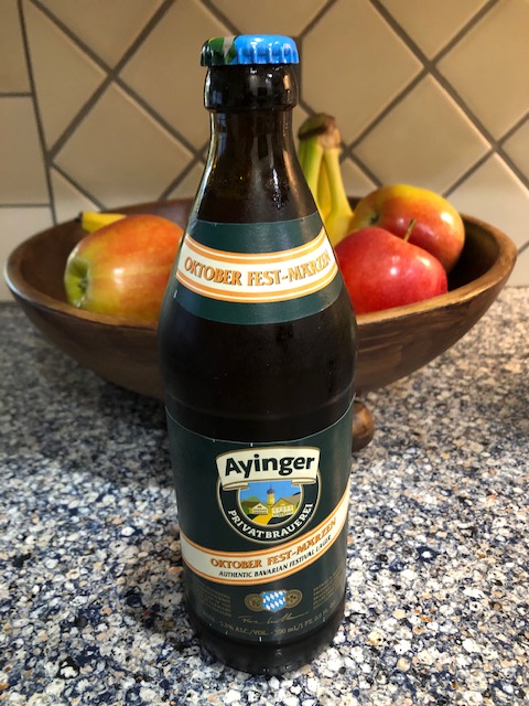 From Wisconsin’s Leinenkugel Brewery, I purchased a six pack of their Oktoberfest beer, and a 16.9 ounce bottle of Oktoberfest beer from the Ayinger Brewery in Germany.