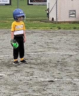 This year, Hudson is a Pirate. He and his teammates were decked out in black and gold just like the Pittsburgh Pirates in the National League. A bonus this season is that each player on Hudson’s team had their last name printed on the back of their jerseys.