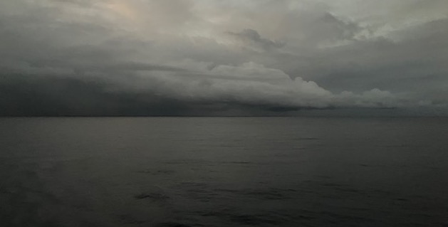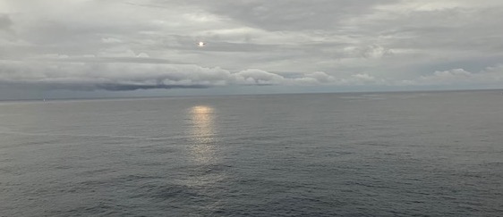 At some point, my old eyes picked up a speck of light in the thickness of the clouds. The light was powerful enough to be reflected on the surface of the ocean.