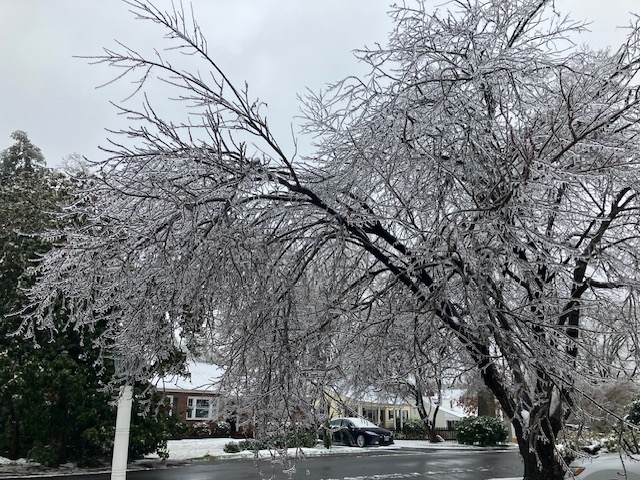 We have no affection for freezing rain in our tree laden neighborhood. That ice coating makes life miserable for trees, their limbs, and the utility lines under them.