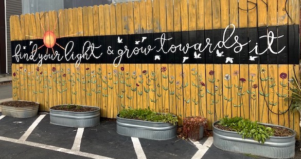 As we were leaving, I read these words artfully displayed on a fence: “find your light and grow towards it.”