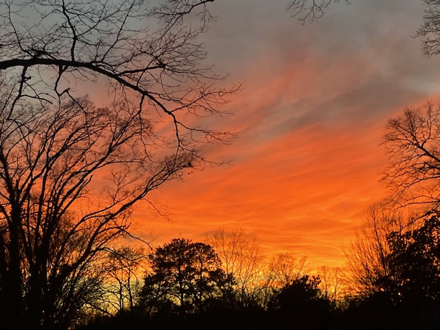 On some late winter afternoons, from the intersection of Stuart Hall and Sweetbriar Roads, I look west into the spectacular colors of a sunset.