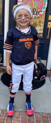 Our grandson in his Chicago Bears uniform (Photo courtesy of his mom)
