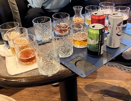 The guys regrouped and attended a beer tasting session. For the beer tasting, Peroni from Italy, Guinness from Ireland, and an amber ale and an IPA both from the Alaska Brewing Company in Juneau were featured. Butch, Dan, and I enjoyed the tasting and the comments from the staff.