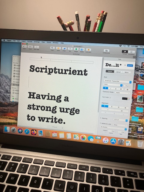 Scripturient is defined as “having a strong urge to write.”