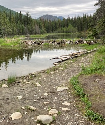 Luckily for us this moose, seemed to sense that she was a photo op for tourists. She stayed around munching for longer than tourists anxious for a real moose sighting deserved. Again, the trail and all that surrounded it are quite pretty including several beaver dams along the way.