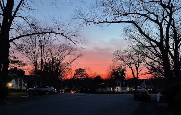 On some late winter afternoons, from the intersection of Stuart Hall and Sweetbriar Roads, I look west into the spectacular colors of a sunset.