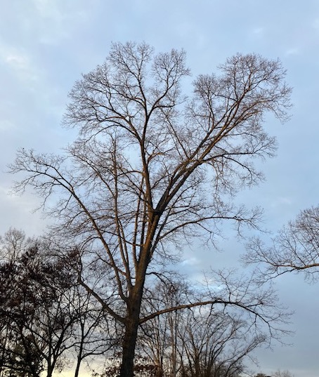 The stark bareness of those trees, lets me see the sculpting of their limbs contrast against an early morning sky.