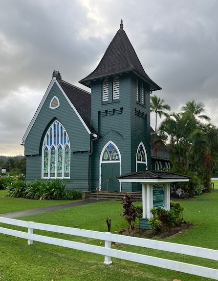 On the way out of the neighborhood, Kevin stopped the van so we could stare at the beautiful Wai oli Hui ia Church. Church of the Singing Waters has quite a history.